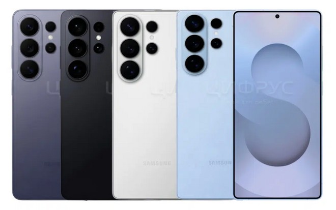 De acordo com vazamentos, o Galaxy S26 Ultra será oferecido em seis cores: Preto, Branco, Azul Céu, Violeta Cobalto, Prata Sombra e Ouro Rosa (esta última possivelmente exclusiva online). O design mostrado em renders vazados mantém a silhueta quadrada e o conjunto de câmeras separadas do antecessor, mas com acabamentos mais vibrantes.